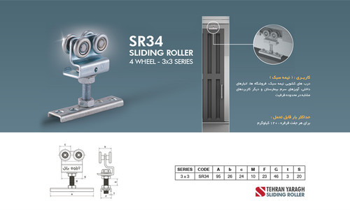 قرقره کشویی سری 4 سبک / 2 چرخ برند تهران یراق ( Tehran Yaragh)