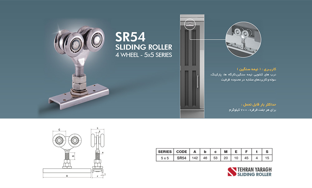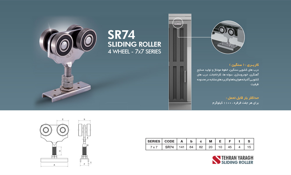 قرقره کشویی سری7 سنگین/ 4 چرخ برند تهران یراق ( Tehran Yaragh)