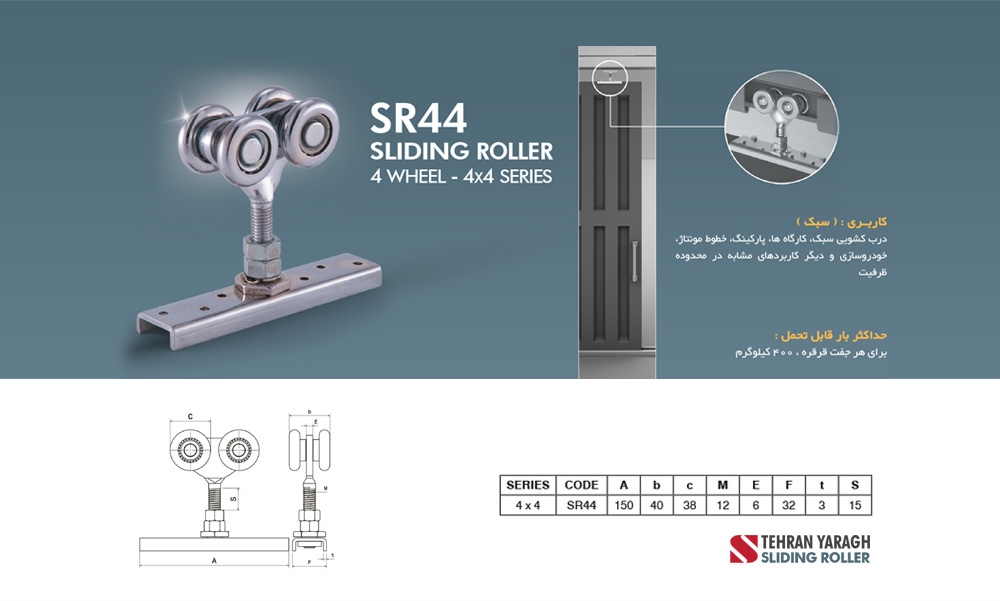 قرقره کشوِیی 4*4 S پلاس بلبرینگی Tehran Yaragh تهران یراق SRB44 plus