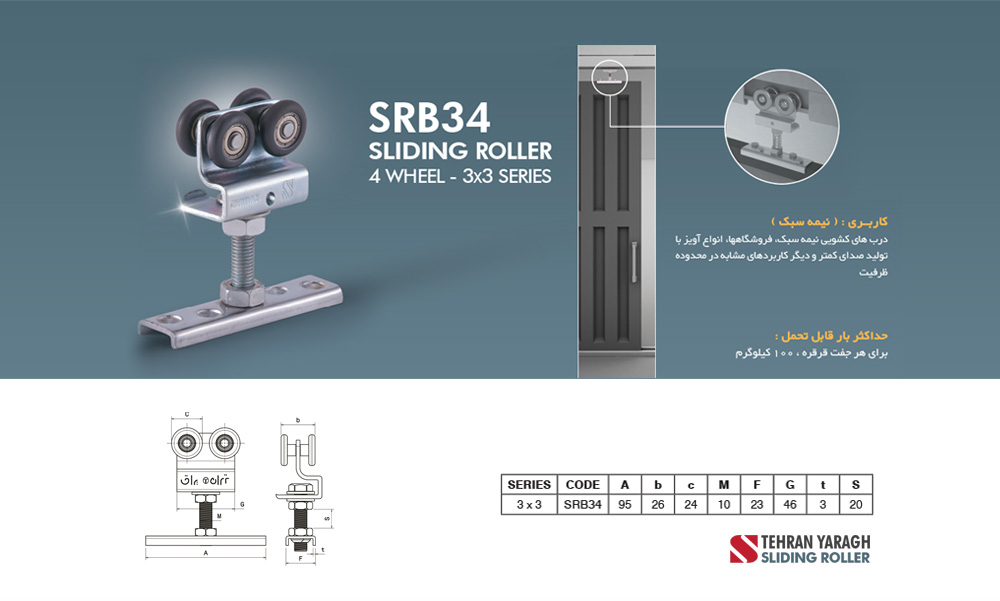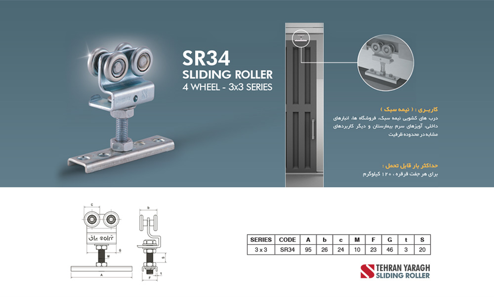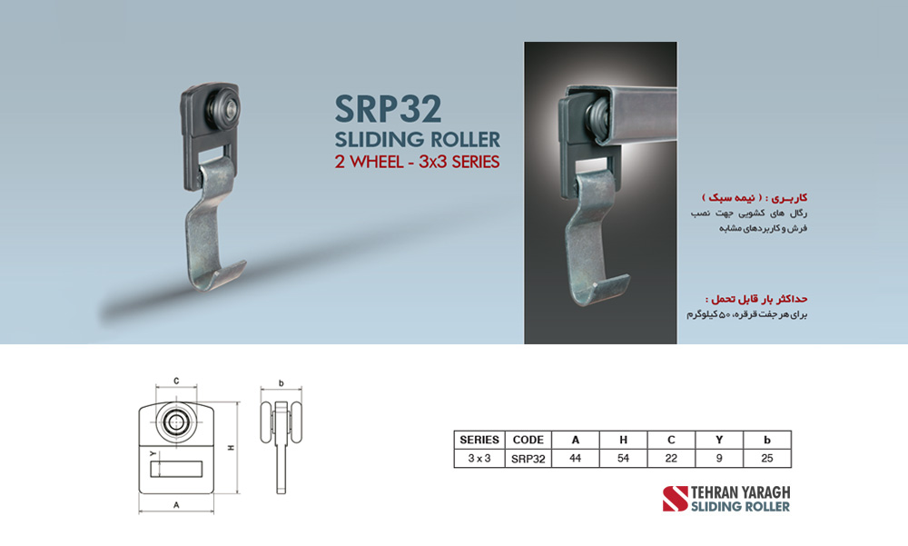 قرقره کشویی 3*3 آویز فرش فلزی -دو چرخ Tehran Yaragh تهران یراق SRI32