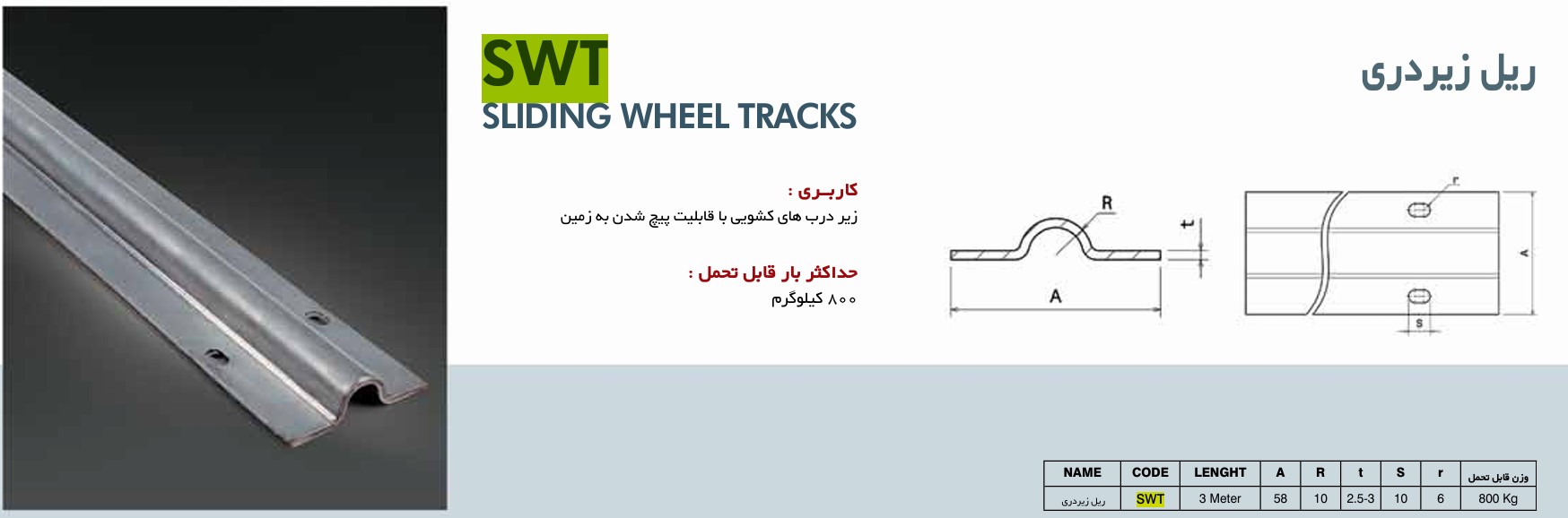 ریل زیر دری گالوانیزه ( سه متری ) SWT