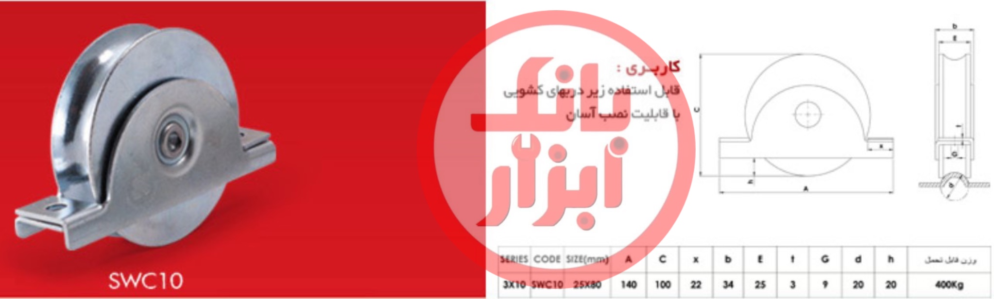 چرخ زیر دری 10*3 آهنی راهنمای زیر درب (آهنی نبشی خور) Tehran Yaragh تهران یراق SWL10