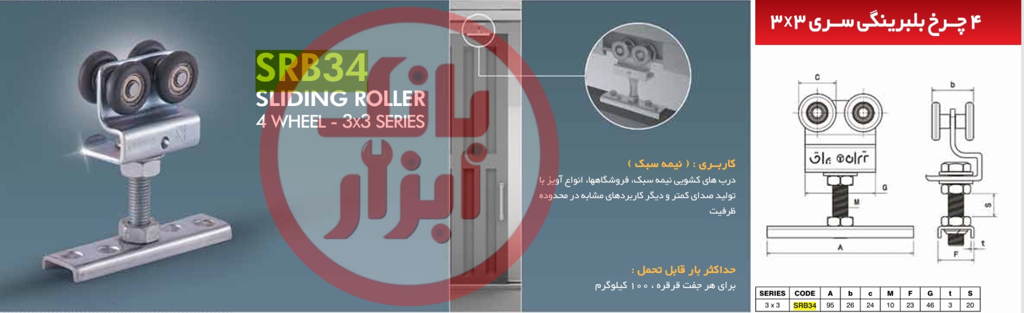 قرقره کشویی 4*4 آویز فرش SRP44 Tehran Yaragh تهران یراق