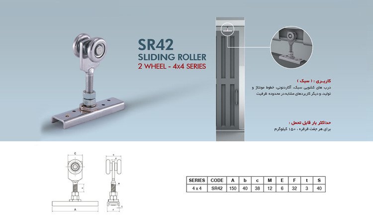 قرقره کشویی سری 4 سبک / 2 چرخ برند تهران یراق ( Tehran Yaragh)